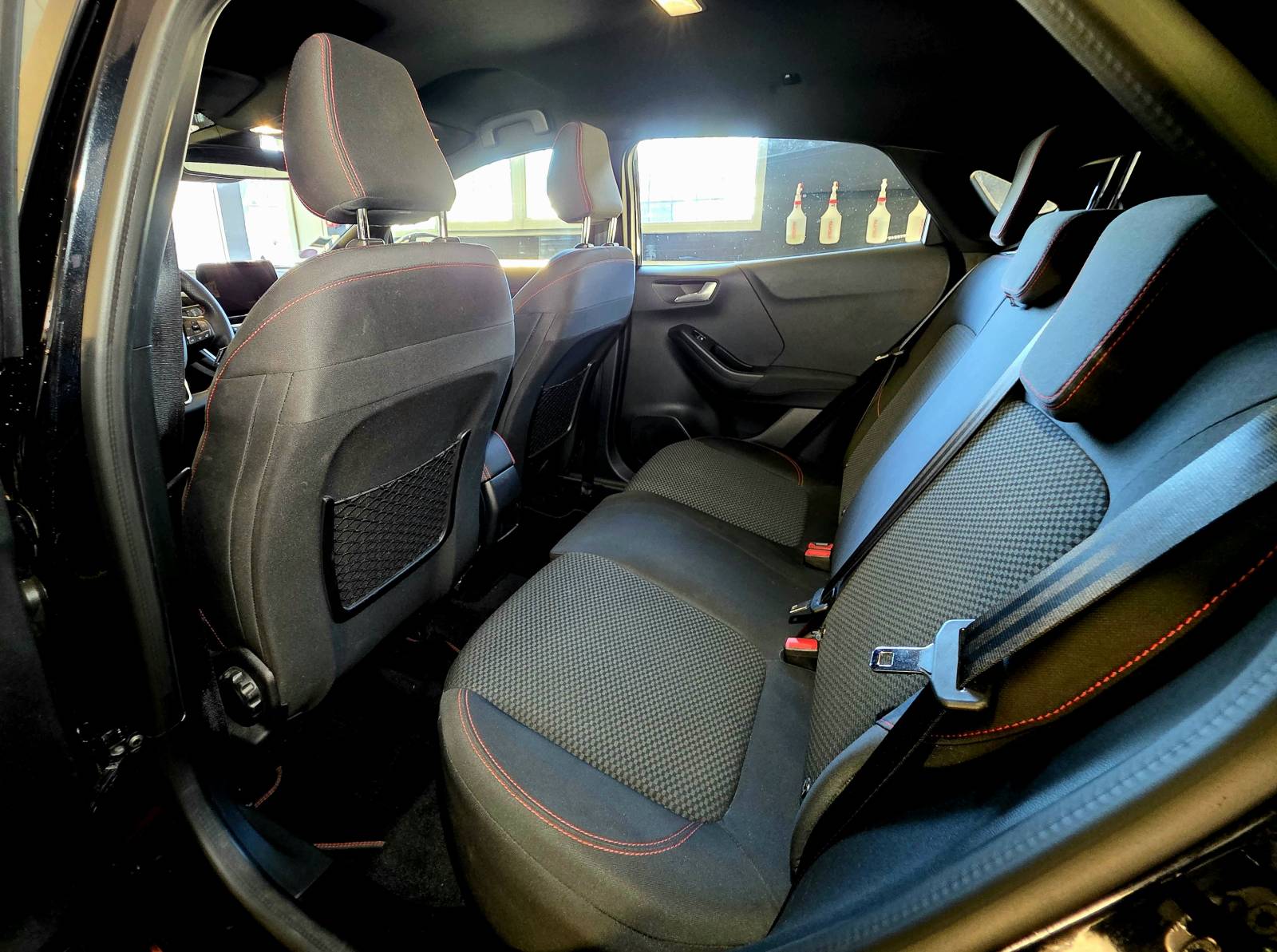 Cette voiture Ford Puma ST Line d'occasion à Pessac se distingue par son design dynamique et affirmé. Sa teinte noire le met parfaitement en valeur, rehaussée par des jantes alliage 17’’ noires, un becquet sport et des élargisseurs de bas de caisse couleur carrosserie.